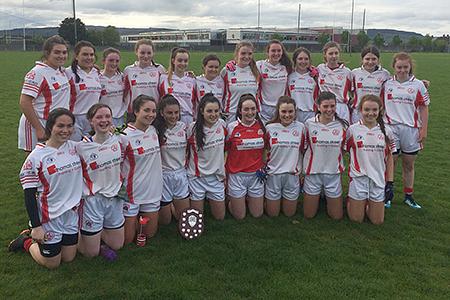 The Mungret St. Pauls ladies U-16 footballers had a very hard fought victory over a gallant Drom/Broadford side in the final of the County League – Section B Cup final at LIT on Monday 6 May. Mungret St. Pauls started the brighter and scored three cracking goals in the first half to lead at half-time on a scoreline of 3-08 to 2-03 and only for hitting the woodwork on no fewer than three occasions, would have been out of sight. But this was a game of two halves and Drom/Broadford battled strongly and went into the lead by a point well into the second half. A goal from a free (after hitting the crossbar for the fourth time!) settled the team and Mungret ran out winners on a final scoreline of 4-10 to 4-06.
