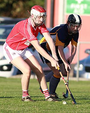 This was a very entertaining match between Camborne School of Mines Shinty Club who were visiting from Cornwall, England and a selection of the Mungret St. Pauls Junior team on Thursday 9 August. With one home player signing a transfer to England the game started with ten players a side. The first half saw Mungret St. Pauls play with their hurley and the Cornwall team with their Shinty Caman. The ball was the Shinty size 3 cork sliotar which was very easily sent through the air with the hurleys which made the play very fast. It was not a serious game with comic moves on the pitch but it ran very smoothly with Mungret St. Pauls powering on in the scoring. With the second half came a change of weapons as the Limerick team put their hands on the Caman which is longer (measured to the belly button) and heaver. Some of the Cornwall team took this opportunity to play with hurleys, this evened the game out and saw more play on the pitch than at the goals. Some of the Mungret St. Pauls players looked to be very comfortable in adapting to their new stick while others struggled.