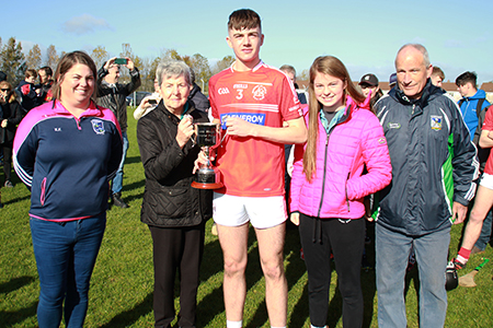 Ballybrown came out strong and a great sideline scored the first point for Ballybrown, they kept the pressure on our backs but their next shot was forced wide. Mungret St. Pauls took control, they drew the goalie out of position, passed the ball infront of the goals but a Ballybrown back got their hurley to the ball as it was directed to the goal. Mungret St. Pauls stayed strong on their pressure but Ballybrown blocked their attempts on scoring. Ballybrown were on the back foot and needed goals to get back into the game. A Ballybrown free dropped infront of the goal but Mungret St. Pauls backs worked together to clear the danger ball. 10 minutes had passed since the restart and it was Ballybrown who got the next point. Mungret St. Pauls still had the want to win this game and a point from play kept a 2 point difference between the teams. Both sides scored another 2 points each which brought them into the final quarter. Ballybrown were not to know but that was their last point of the game eventhough they tried to put the ball into the net, all our backs were in top form stopping everything that came their way. 2 pointed frees for Mungret St. Pauls left them with a comfortable 4 point lead with minutes left on the clock. It was a battle to the end but there was rejoicing when the final whistle was blown as Mungret St. Pauls were declared the Shane Hourigan U-16 Hurling County Champions. The first time this cup was won in 2015 was by Mungret St. Pauls and there are 6 families that have players on both of these teams. A lovely touch by the captain of the team, Conor O'Malley as he accepted the trophy from Shane Hourigans mother was handing the trophy to Eamonn Flahive who picked up an injury in the last Ballybrown match that ruled him out of the replay. Well done to this team who put in a lot of work and effort through the year and it has all paid off.