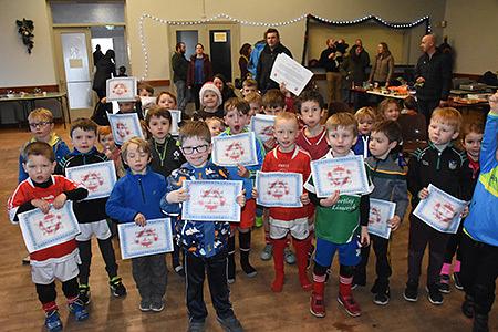 The U6’s finished up for the year on Dec 8th with a few hurling and football games together, despite the miserable weather, followed by a big party in Mungret GAA hall. Once they had their fill of cakes, buns, sweets and carrots and humus they each received a Certificate of Achievement for their efforts during the year. A big thanks went out to all the parents for bringing goodies as well as bringing their children week-in, week-out to sessions. Coaches were also thanked and a ‘Chocolate Sliotar’ was presented to them all by TD Willie O Dea. U6’s will return again on Saturday January 12th 11am for football, weather permitting, with hurling on Monday 14th at 7pm under lights at Crescent Comp.