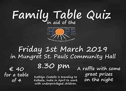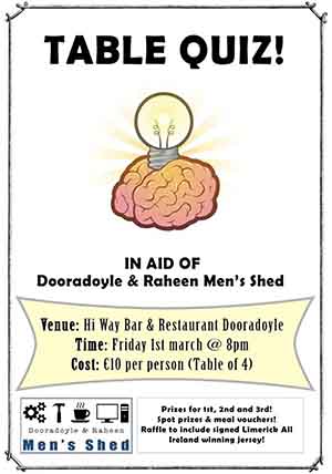 The Dooradoyle /Raheen Mens Shed are hosting a table quiz on Friday night