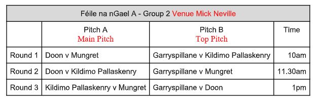 U-14 Féile iomáint tournament fixtures in Mick Neville Park