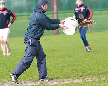 Before the game started John Van Veen and Brian Mullane had to take a bucket and muck scraper to empty the water logged goal mouth. Na Piarsaigh opened the game with a point but Mungret St. Pauls did not take too long to even the score and then pulled ahead adding on another 3 points on the trot. There was some great team work played to the lead up to what could have been a goal for Mungret St. Pauls but a foul determined the play went to a penalty for Mungret St. Pauls which hit the top corner of the net to bring Mungret St.Pauls 5 points ahead. Na Piarsaigh tried for their own goal but it was expertly denied resulting in a pointed 65 for Na Piarsaigh. Just as the first quarter of the match was closing Mungret St. Pauls added another 2 points to their score. This seemed to be the turning point of the game and Mungret St. Pauls 6 point lead started to disappear as Na Piarsaigh scored their own goal and pointed 2 placed balls. Mungret St. Pauls managed another point before Na Piarsaigh hit hard with their second goal. Mungret St. Pauls were on the back foot and with another point from Na Piarsaigh the first half ended with Mungret St. Pauls 2 points behind after achieving a 6 point lead.