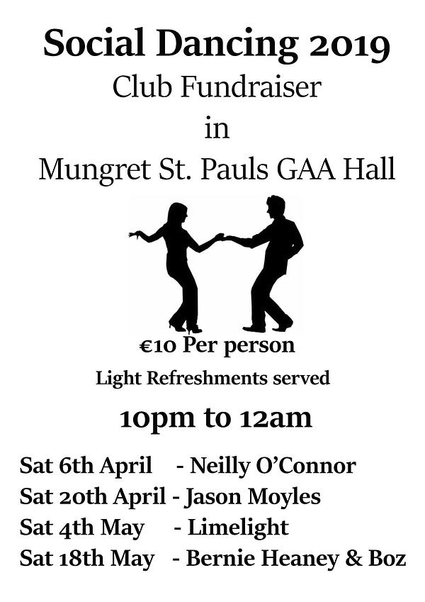 So put on the dancing feet and make your way to Mungret St. Pauls club house this Saturday.