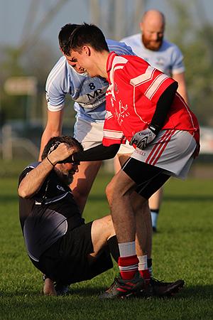 The weather was perfect for a football match in Mungret on Thursday 18 April 2019. Mungret St. Pauls had played their first match only 4 days earlier while this was Na Piarsaighs first match of the group. There was constant action in the match even the ref got floored .