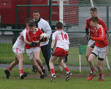 Mungret St. Pauls were playing into the strong wind in the first half and started very strong with a striking goal, Oola replied with a point. Mungret St. Pauls split the uprights 3 more times before Oola attacked our backs and after a scramble at the goal mouth the ball was seen going into the back of the net. Mungret St. Pauls went straight up the the other end but failed to convert a score, they did keep the ball in that end of the pitch for a good while and eventually from a free the ball was kicked to a Mungret St. Pauls player standing in the right place and the ball was sent to the back of the net. This is where the first half ended, Mungret St. Pauls 2-3 Oola 1-1.