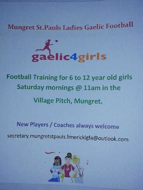 See MoreUnderage training for Ladies Football U-6 to U-12 resumed on Saturday 31 August at 11am in the Village Pitch. New players and coaches are always welcome. If you require any further information Catherine Murphy can be contacted on 087-6533347