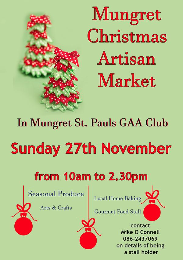 We are looking to create a fun and friendly atmosphere slap bang on the grounds of our GAA club again selling delicious culinary treats, handmade crafts & textiles. Our aim is to promote local, so If you are a budding stall holder and would like your opportunity to have a slot please make contact with Mike O Connell at 086-2437069 for more details.