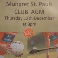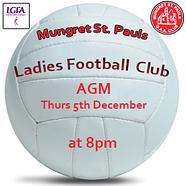 Mungret St. Pauls Ladies Football AGM will take place on Thur 5th Dec at 8pm in the Clubhouse...