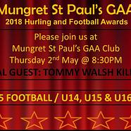 Our awards night is tonight at 8.30pm for the successful U-16, U-15 and U-14 hurlers also the ...